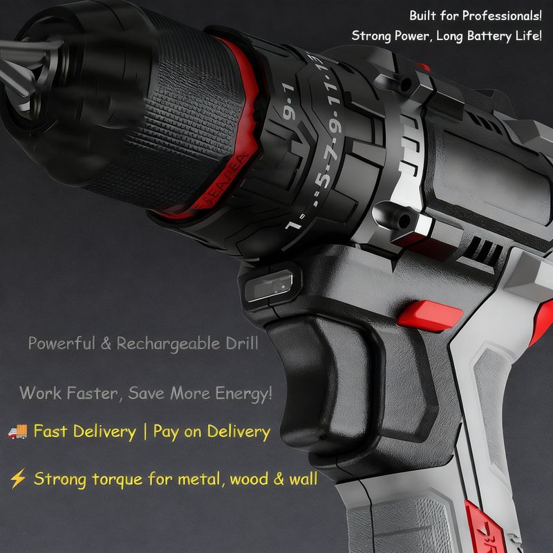 Powerful Cordless Drill – Strong Torque, Long Battery Life, Pay on Delivery!